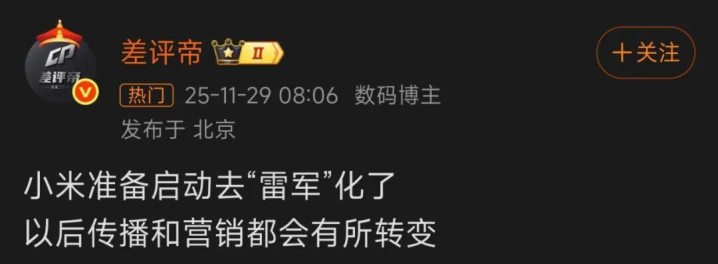十年后,小米主动淡化雷军个人色彩,将品牌重心切换至“组织矩阵”。